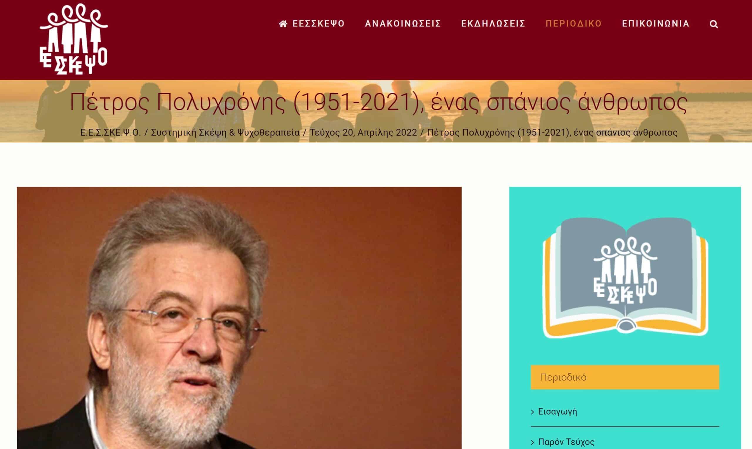 “Petros Polychronis (1951-2021), a rare human being” by D.Sakkas @ HE.S.T.A.F.T.A. newsletter