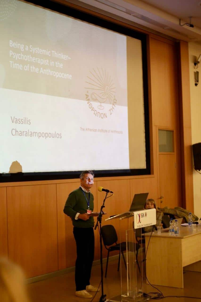 Ο κ. Χαραλαμπόπουλος άνοιξε το συνέδριο με την κεντρική του ομιλία με τίτλο: “Being a Systemic Thinker–Psychotherapist in the Time of the Anthropocene”, η οποία εξερεύνησε τις προκλήσεις και τις ευκαιρίες της συστημικής σκέψης και πρακτικής στην εποχή του Ανθρωποκαίνου.